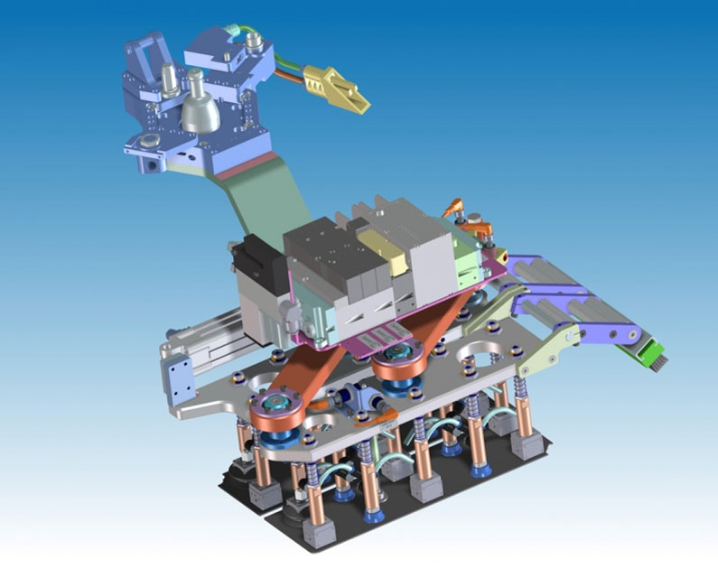 Robotergestützte Fertigungslinie zur automatischen Bearbeitung (Stanz- und Klebeprozesse) von Heck-Stossfängern, Taktzeit ca. 40 Sek.